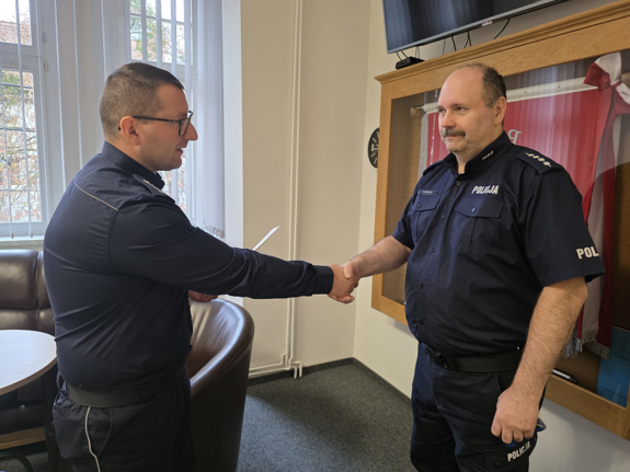 35 lat w policyjnym mundurzeAspirant sztabowy Sławomir Ziółkowski z Komendy Powiatowej Policji w Chełmnie obchodzi jubileusz 35-lecia służby w policyjnym mundurze. Z tej okazji Komendant Powiatowy Policji w Chełmnie złożył mu podziękowania oraz wręczył list gratulacyjny w dowód uznania za wieloletnią, pełną zaangażowania służbę. Dodano: 29.10.2025