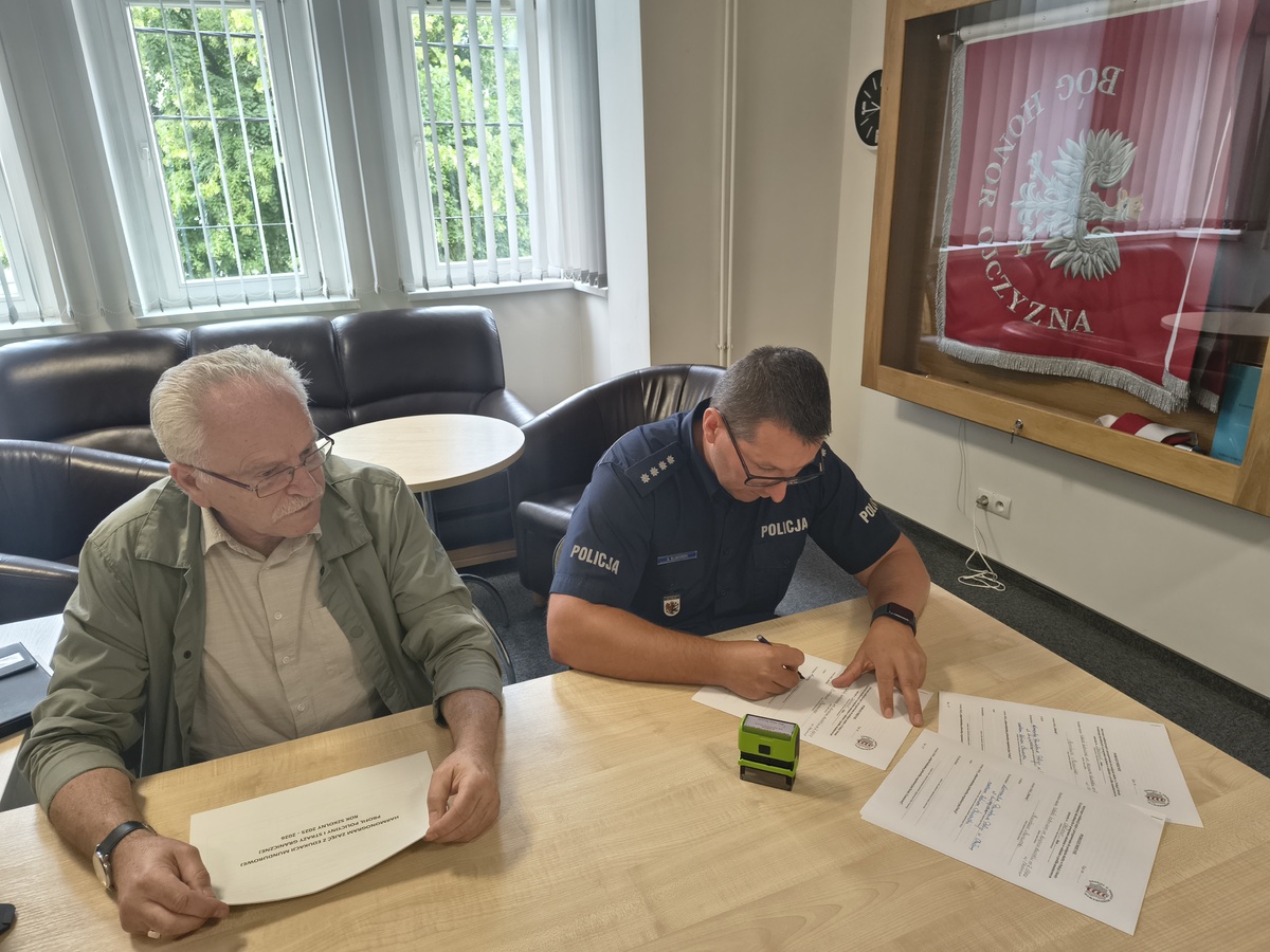 24lipca 2025 roku w siedzibie Komendy Powiatowej Policji w Chełmnie odbyło się uroczyste podpisanie porozumienia o współpracy pomiędzy Komendą Powiatową Policji w Chełmnie a Szkołą Techniczną im. Korpusu Kadetów nr 2 BZDZ w Chełmnie.
