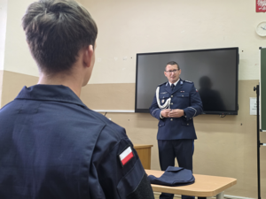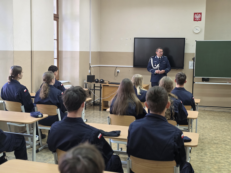 Komendant pogratulował uczniom wyboru ścieżki edukacyjnej, podkreślając, że służba w Policji to nie tylko zawód, ale przede wszystkim misja na rzecz bezpieczeństwa i dobra drugiego człowieka.