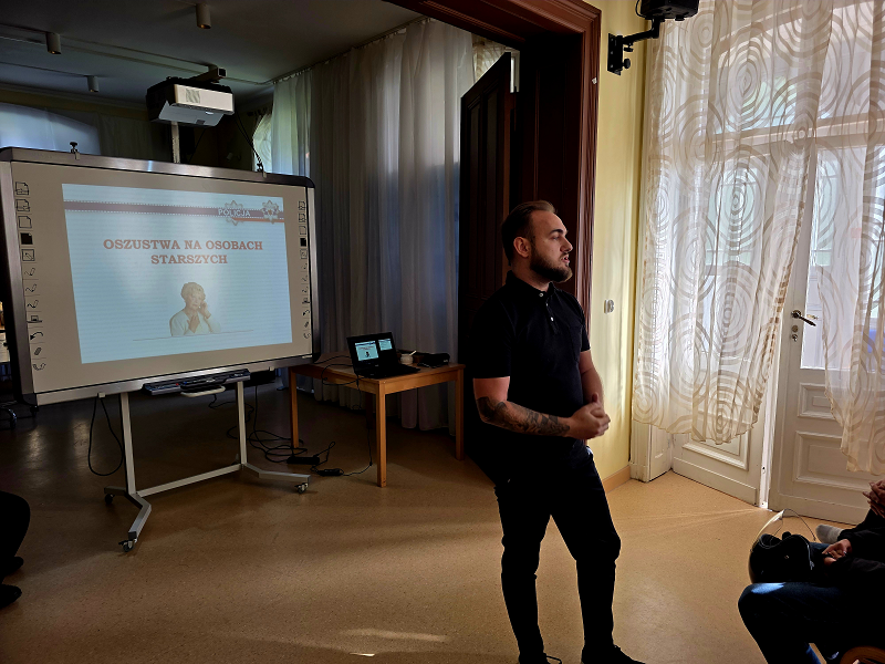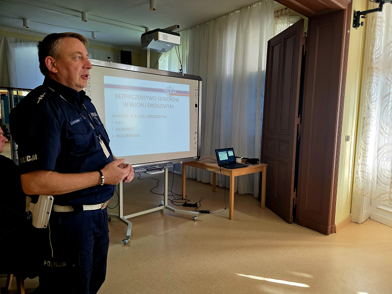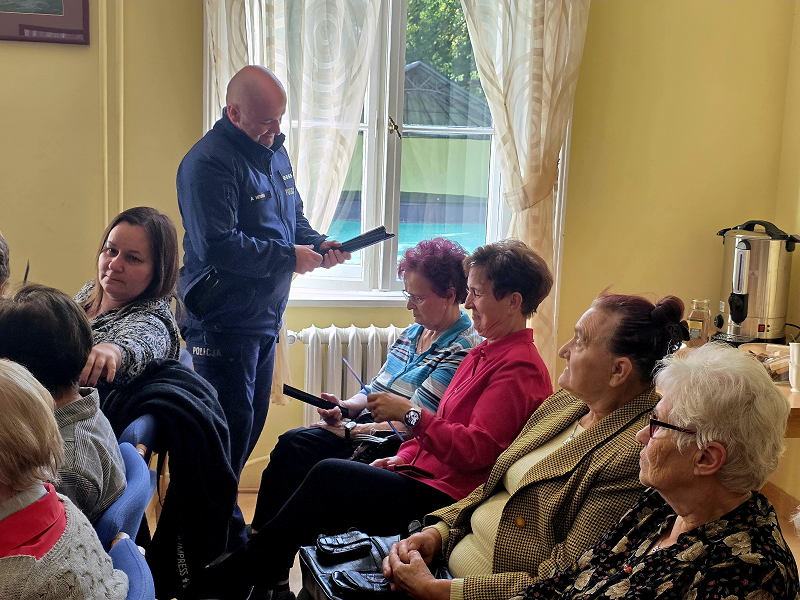 Nie zabrakło także rozmowy na temat bezpieczeństwa w ruchu drogowym, w tym zasad bezpiecznego poruszania się pieszych i kierowców, a także omówienia najczęściej popełnianych oszustw na szkodę seniorów. Policjanci zwrócili uwagę na mechanizmy działania sprawców oraz sposoby unikania zagrożeń.