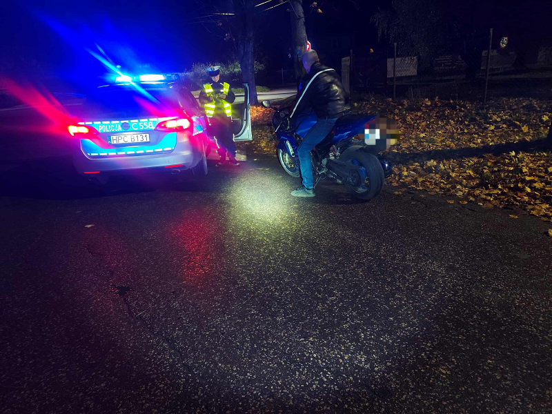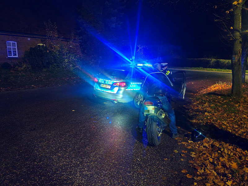 Wczoraj (23.10.2025) w Unisławiu policjanci Wydziału Ruchu Drogowego z Chełmna mierzyli prędkość na ul. Toruńskiej. Około godziny 20:45 zauważyli motocykl poruszający się zdecydowanie za szybko. Miernik prędkości wskazywał jednoznacznie, że kierujący kawasaki przekroczył prędkość w obszarze zabudowanym o 47 km/h. Mundurowi wydali polecenie do zatrzymania się, jednak motocyklista zignorował je. Policjanci natychmiast ruszyli w pościg. Mimo użycia sygnałów świetlnych i dźwiękowych, mężczyzna nie reagował i kontynuował jazdę. Po krótkim pościgu funkcjonariusze zatrzymali go. Podczas kontroli okazało się, że 43-letni mieszkaniec powiatu bydgoskiego był trzeźwy. W trakcie sprawdzania w systemach policyjnych wyszło na jaw, że jego motocykl od 13 lat nie posiada ważnych badań technicznych. Mężczyzna tłumaczył szczerze, że uciekał, ponieważ obawiał się konsekwencji z tego powodu. Teraz 43-latek odpowie za niezatrzymanie się do kontroli drogowej oraz popełnione wykroczenia w ruchu drogowym, w tym przekroczenie prędkości i brak badań technicznych pojazdu.