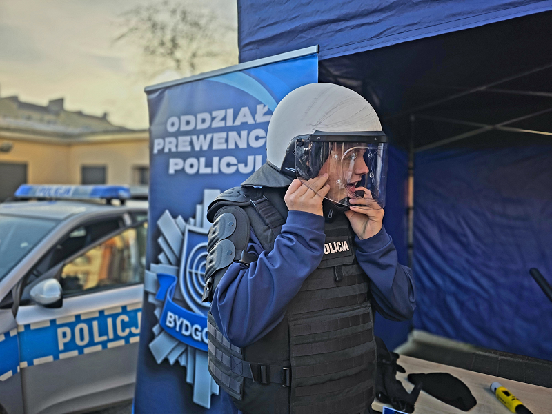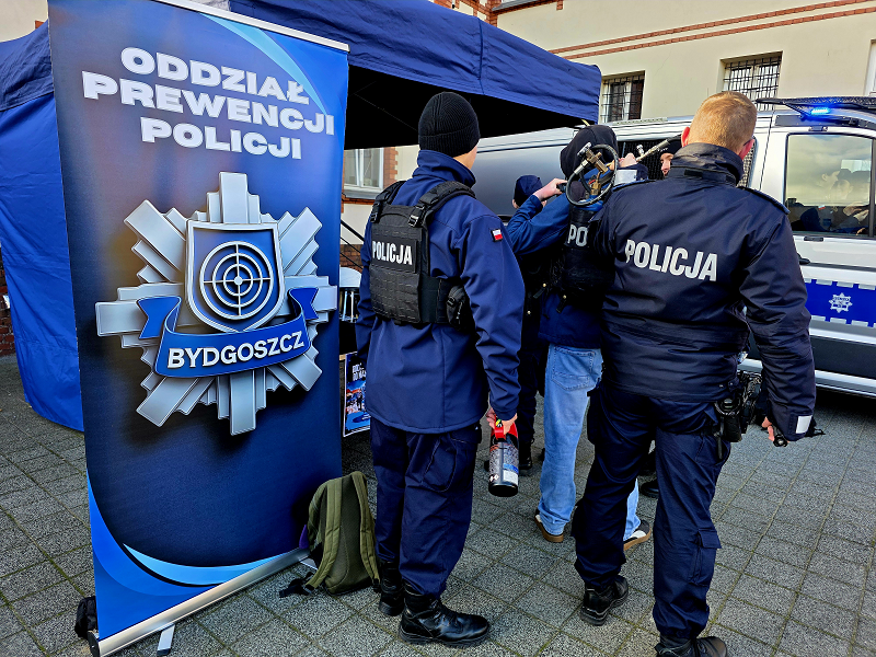Dodatkową atrakcją była obecność funkcjonariuszy Oddziału Prewencji Policji w Bydgoszczy, którzy zaprezentowali wyposażenie wykorzystywane podczas działań pododdziałów zwartych oraz opowiedzieli o specyfice swojej służby.